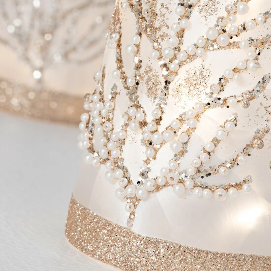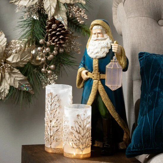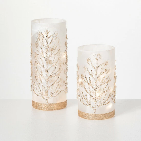 This set of two lighted Christmas cylinders will add a warm glow to your Holiday decor. Embellished with glitter and pearls, these 6 and 8 inch cylinders are sure to elevate your space. Over the last 52 years, Sullivans has become an industry leader in home decorations. Our brand is rooted in tradition while incorporating modernized trends to keep your home looking up to date with timeless style. Here at Sullivans, we pride ourselves on creating product designs focused on quality and value, ensuring that our customers have access to beautiful products at reasonable price points.