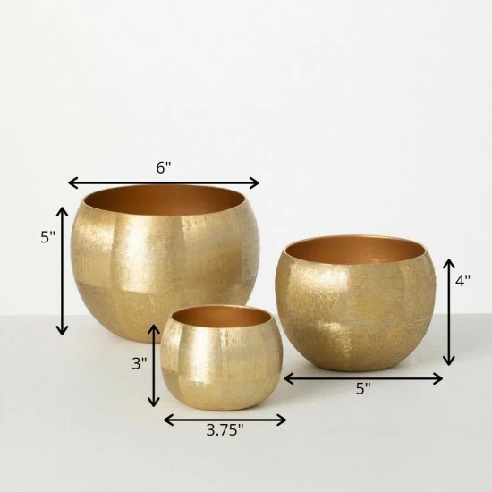 Veiled in a beautiful brushed gold finish, this trio of pots is the perfect size and scale for today’s modern home. Perfect for green plants as well as cut flower arrangements, these containers come in three graduated sizes. Over the last 52 years, Sullivans has become an industry leader in home decorations. Our brand is rooted in tradition while incorporating modernized trends to keep your home looking up to date with timeless style. Here at Sullivans, we pride ourselves on creating product designs focused on quality and value, ensuring that our customers have access to beautiful products at reasonable price points.