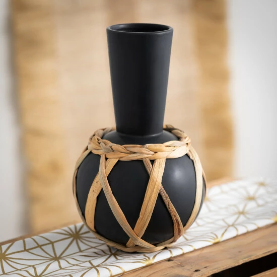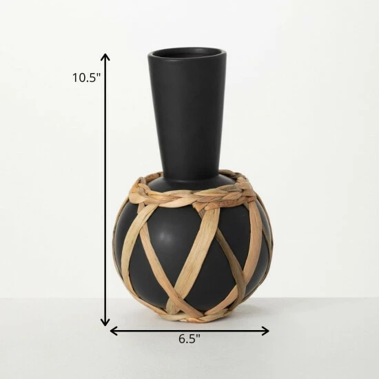 Capture the look and feel of a marketplace find from vacation traveling a world away with this eclectic vase. This matte black vessel is hand wrapped with rattan for a unique natural look and it stands 10.5″ tall. Over the last 52 years, Sullivans has become an industry leader in home decorations. Our brand is rooted in tradition while incorporating modernized trends to keep your home looking up to date with timeless style. Here at Sullivans, we pride ourselves on creating product designs focused on quality and value, ensuring that our customers have access to beautiful products at reasonable price points.