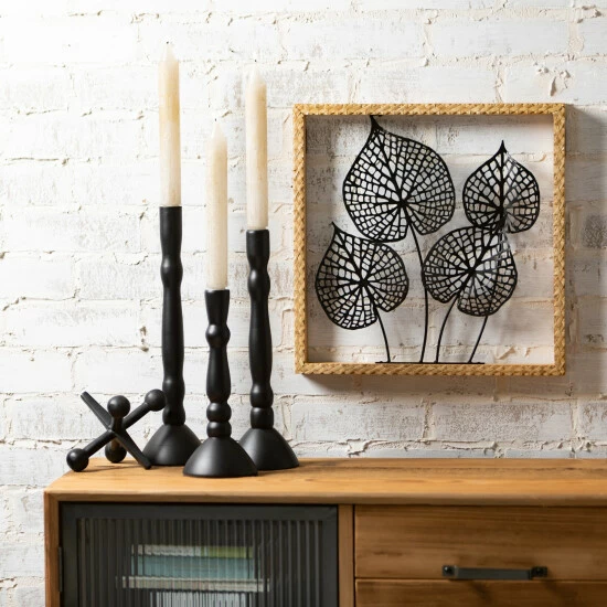 The metal leaf cutout silhouettes framed in a stunning natural wooden frame, makes a bold statement on your wall. Measuring at 15″, these square art pieces look great with any decor. Over the last 52 years, Sullivans has become an industry leader in home decorations. Our brand is rooted in tradition while incorporating modernized trends to keep your home looking up to date with timeless style. Here at Sullivans, we pride ourselves on creating product designs focused on quality and value, ensuring that our customers have access to beautiful products at reasonable price points.