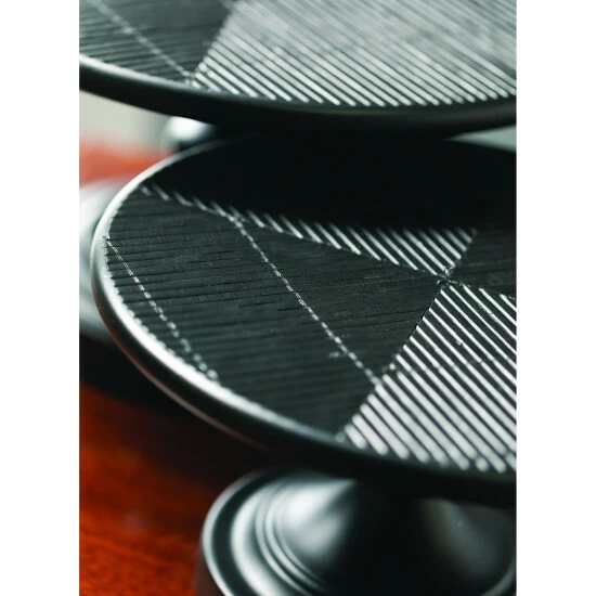 Your home dΓ©cor will rise above the rest with the addition of this pair of black metal risers. Elevate baked goods, candles, or anything you choose in your kitchen or dining room with these handy pieces.