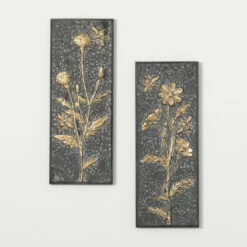 - Deck your walls with this festive metallic floral wall panel set