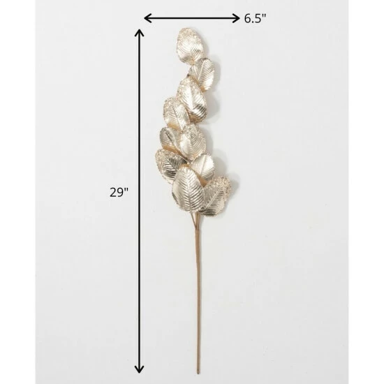 Trimmed with brilliant sparkling beadwork and glitter, these metallic leaves come together to create a striking 29″ tall spray. Each stem features about ten leaves of shimmering foliage.