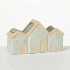This pale mint green and cream triple house planter is the perfect “home” for small florals or greens. Crafted of ceramic, it will make an adorable statement in any space. Over the last 52 years, Sullivans has become an industry leader in home decorations. Our brand is rooted in tradition while incorporating modernized trends to keep your home looking up to date with timeless style. Here at Sullivans, we pride ourselves on creating product designs focused on quality and value, ensuring that our customers have access to beautiful products at reasonable price points.