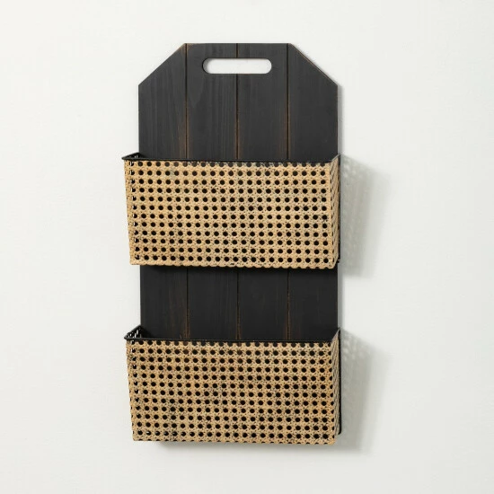 The functionality of this wooden double wall pocket is matched only by its style. A great place for mail, homework assignments and other special paperwork, each pocket features a natural woven outer detail. The look of open cane webbbing lends to a tropical vibe. Over the last 52 years, Sullivans has become an industry leader in home decorations. Our brand is rooted in tradition while incorporating modernized trends to keep your home looking up to date with timeless style. Here at Sullivans, we pride ourselves on creating product designs focused on quality and value, ensuring that our customers have access to beautiful products at reasonable price points.