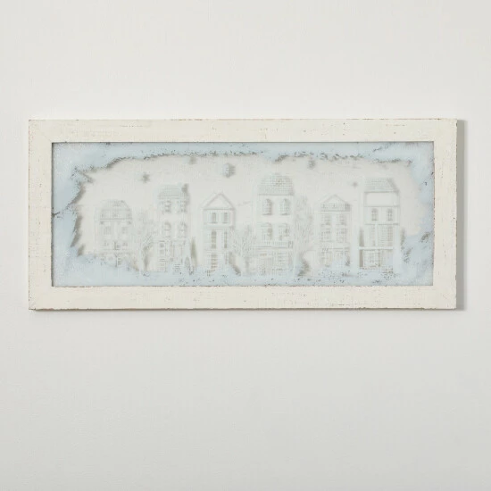 Framed in a simple white frame, the glass panoramic landscape of this hanging wall decor is accentuated with Sullivans very own exclusive artwork. It ideally displays our winter village scene with a look resembling a hand-drawn finish on a frosty window. Over the last 52 years, Sullivans has become an industry leader in home decorations. Our brand is rooted in tradition while incorporating modernized trends to keep your home looking up to date with timeless style. Here at Sullivans, we pride ourselves on creating product designs focused on quality and value, ensuring that our customers have access to beautiful products at reasonable price points.