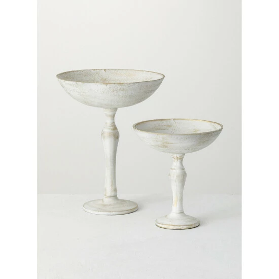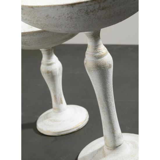 With a beautiful whitewashed finish, this set of two aluminum pedestals make the perfect containers. Great for by a door, in a bathroom, or next to you on a side table.