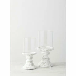 Classic and stately, this pair of glass candle holders will be the perfect addition to a tabletop display. The versatility of their design make them an ideal accessory for modern interiors, and refined floral displays.