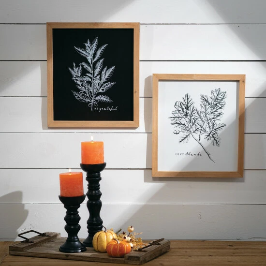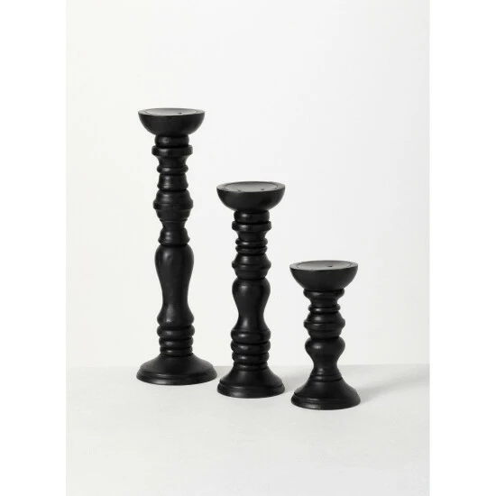 Nothing tops a mantle like the traditional candlestick, and this trio is no exception. Painted deep black, these curvaceous mango wood holders hold 4″ candles and measure in at 8″, 12″ and 16″ in height.