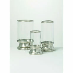 Celebrate elegance with this trio of shiny silver candleholders with glass sleeves. A perfect addition to any setting, simply add your favorite candle to the 9″ and 12″ tall holders for a dash of sophistication.