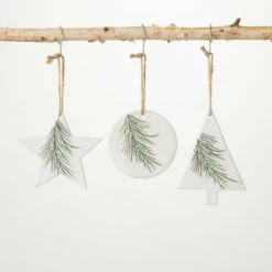 - This ornament set measures 3.5″L x .25″W x 5″H; 4.25″L x .25″W x 4″H; 3.5″L x .25″W x 3.5″H