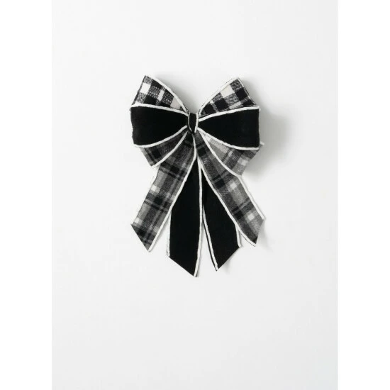 What’s black and white and plaid all over? Well this clever bow ornament of course! Made from soft and flexible polyester, this piece measures 13.5 long by 10″ wide.”