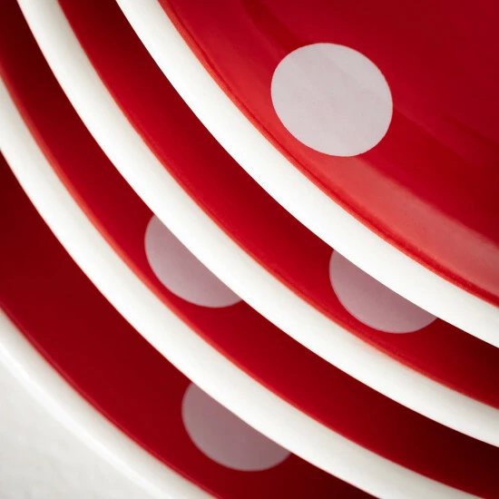 - White & red polka dot plate set will add extra cheer to your Christmas festivities