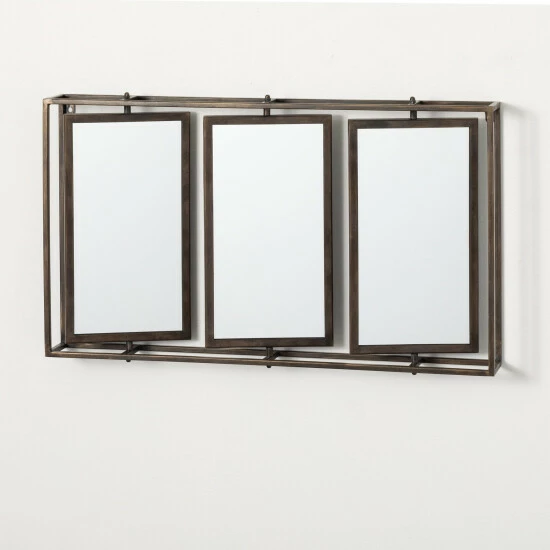 Creating a bold statement perfect for a dining or family room wall or hanging in a foyer, this contemporary piece is magnificent. Featuring a modern black frame encompassing a trio of sizable mirrors, it measures a grand 18″ x 31.25″ in size. Over the last 52 years, Sullivans has become an industry leader in home decorations. Our brand is rooted in tradition while incorporating modernized trends to keep your home looking up to date with timeless style. Here at Sullivans, we pride ourselves on creating product designs focused on quality and value, ensuring that our customers have access to beautiful products at reasonable price points.
