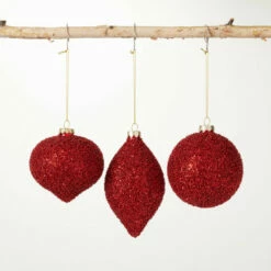 Decorate your Christmas tree this year with this exclusive red ornament set. Made of glass, this ornament set will be the perfect addition to your holiday decor. Over the last 52 years, Sullivans has become an industry leader in home decorations. Our brand is rooted in tradition while incorporating modernized trends to keep your home looking up to date with timeless style. Here at Sullivans, we pride ourselves on creating product designs focused on quality and value, ensuring that our customers have access to beautiful products at reasonable price points.