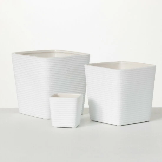 It’s hip to be square! Our square planters feature a subtle wavy outer pattern and rounded corners that lend a modern look to any space. The white finish gives you a striking yet versatile foundation for any color palette. Over the last 52 years, Sullivans has become an industry leader in home decorations. Our brand is rooted in tradition while incorporating modernized trends to keep your home looking up to date with timeless style. Here at Sullivans, we pride ourselves on creating product designs focused on quality and value, ensuring that our customers have access to beautiful products at reasonable price points.