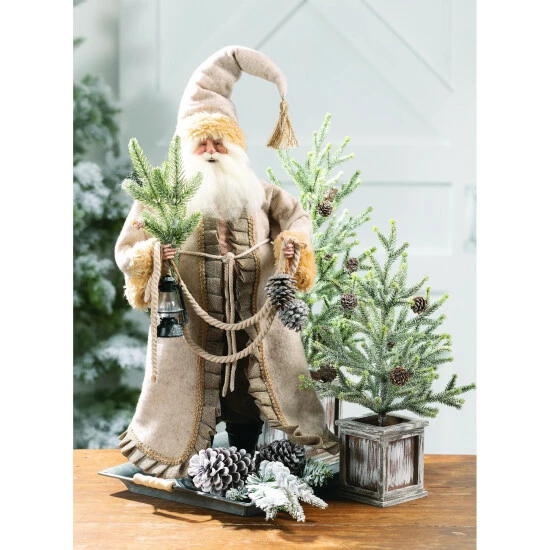 Nothing says Christmas quite like an elaborately decorated Santa figurine. This piece will steal the hearts of your guests with his intricate features, festive accessories and detailed polyester suit. This guy stands at 28″ tall.
