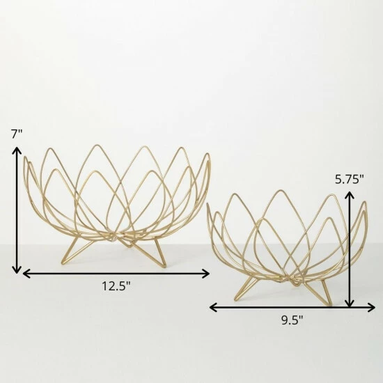 Perfect for the countertop or tabletop, this set of two stylish open-wire bowls gleam with their brushed gold finish. Footed leg supports are the perfect accent to the almost flower-like contours of this elegant and functional piece. Over the last 52 years, Sullivans has become an industry leader in home decorations. Our brand is rooted in tradition while incorporating modernized trends to keep your home looking up to date with timeless style. Here at Sullivans, we pride ourselves on creating product designs focused on quality and value, ensuring that our customers have access to beautiful products at reasonable price points.