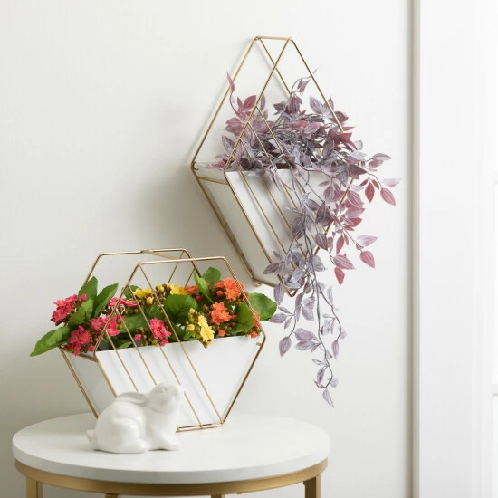 Bring a little green into your living space with this set of two geometric wall pockets. A pretty pair, they add dimension and detail to your space, while offering a practical place to display your favorite botanicals. Over the last 52 years, Sullivans has become an industry leader in home decorations. Our brand is rooted in tradition while incorporating modernized trends to keep your home looking up to date with timeless style. Here at Sullivans, we pride ourselves on creating product designs focused on quality and value, ensuring that our customers have access to beautiful products at reasonable price points.