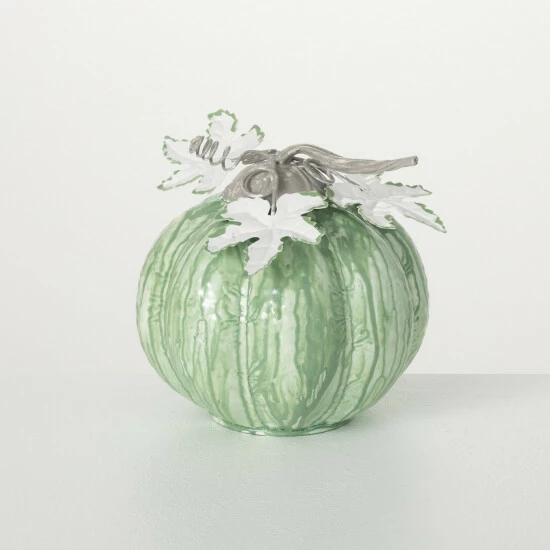 Resting eloquently atop your favorite surface, this 6.5″ tall metallic pumpkin easily makes an ornamental statement about the fall season. Bathed in a toasted sage green hue, this decorative piece features a beautiful textured wash finish. Over the last 52 years, Sullivans has become an industry leader in home decorations. Our brand is rooted in tradition while incorporating modernized trends to keep your home looking up to date with timeless style. Here at Sullivans, we pride ourselves on creating product designs focused on quality and value, ensuring that our customers have access to beautiful products at reasonable price points.