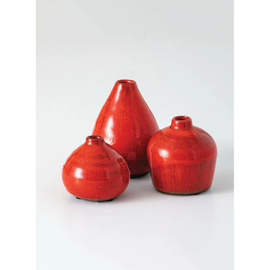 Simply red and totally classic, this set of designer vases will look great on display for years to come. These timeless glazed ceramic pieces fit anywhere and although they look great on their own, try dropping in faux plants or florals, and watch how they take center stage!