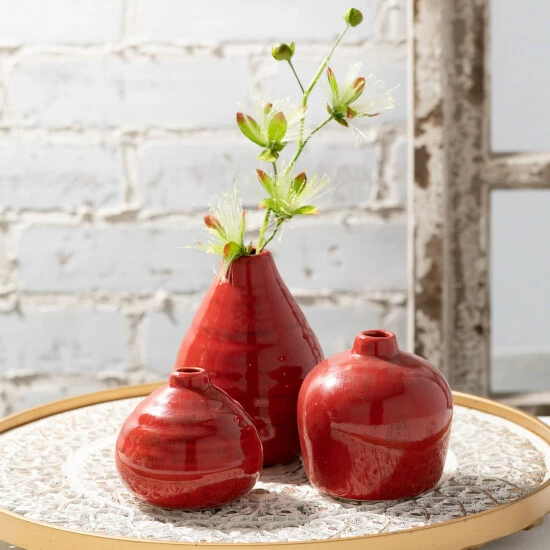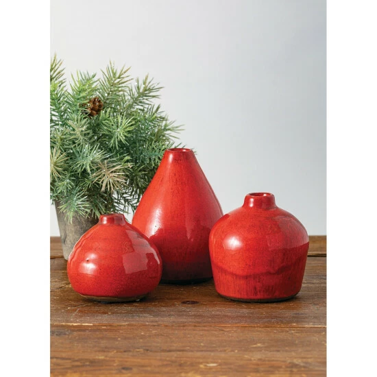 - Showcase your style with this decorative red rustic farmhouse ceramic vase set of 3