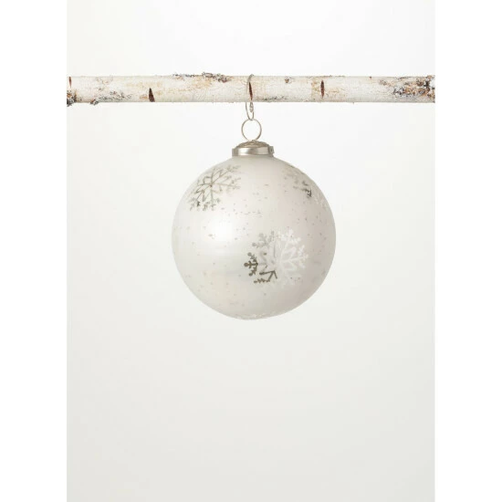 Nothing beats a classic, and certainly nothing looks better than a bulb ornament with finite beautiful details. Coated in a white frost, snowflakes and detail marks display the silver finish underneath.