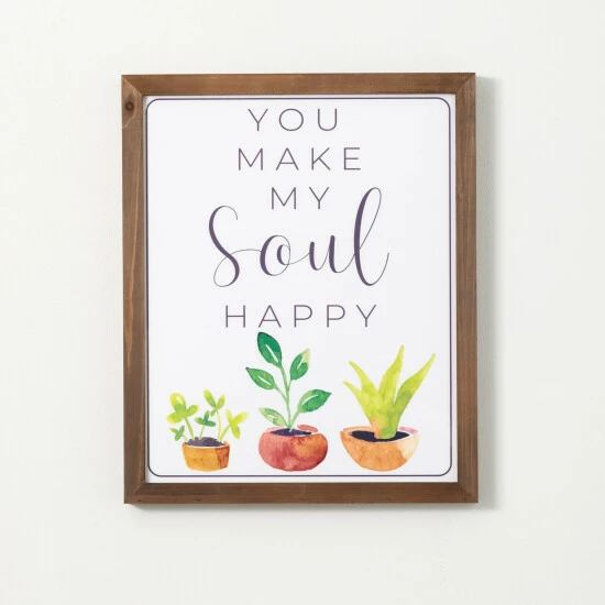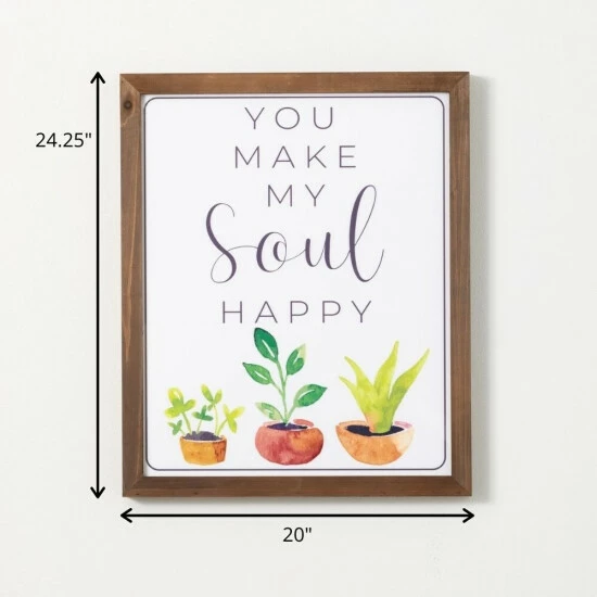 Great as a gift and even better hanging on your own wall, this wood framed sign that measures 20″x 24.25″, features an illustration of potted plants. The sentiment: ‘You make my soul happy’ makes an inspirational decor piece. Over the last 52 years, Sullivans has become an industry leader in home decorations. Our brand is rooted in tradition while incorporating modernized trends to keep your home looking up to date with timeless style. Here at Sullivans, we pride ourselves on creating product designs focused on quality and value, ensuring that our customers have access to beautiful products at reasonable price points.
