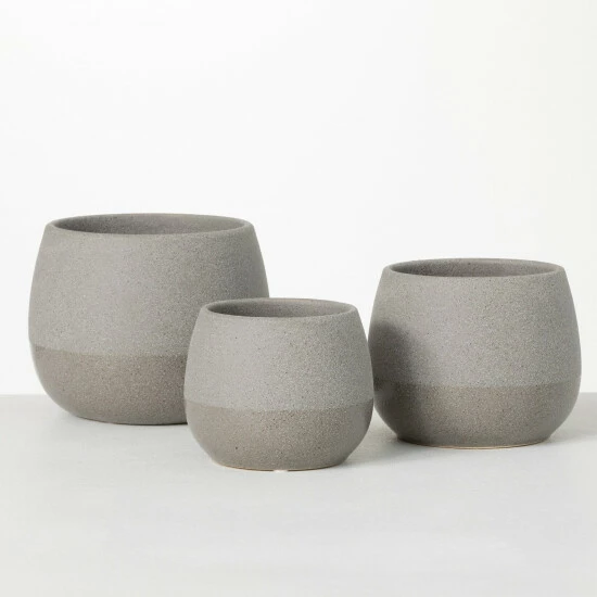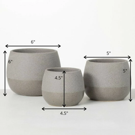 Look no further for the perfect container set for your succulents or floral arrangement! In a refined gray color, this set provides a neutral foundation for your floral creations. The squatty shape makes them perfect for low growing succulents. Over the last 52 years, Sullivans has become an industry leader in home decorations. Our brand is rooted in tradition while incorporating modernized trends to keep your home looking up to date with timeless style. Here at Sullivans, we pride ourselves on creating product designs focused on quality and value, ensuring that our customers have access to beautiful products at reasonable price points.