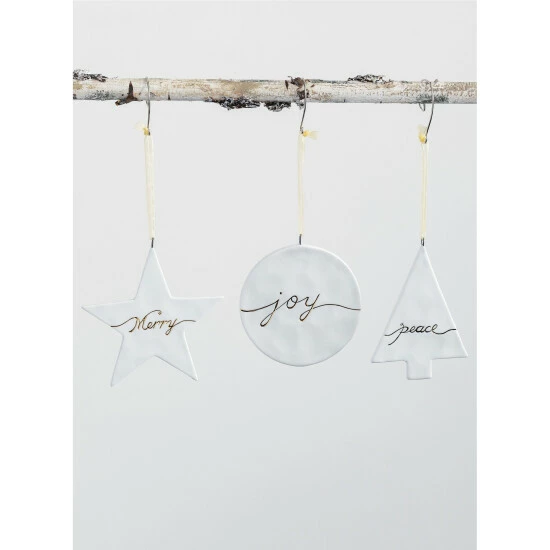 - This set of porcelain ornaments is sure to complement your Christmas tree