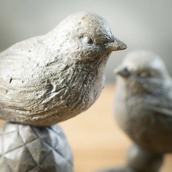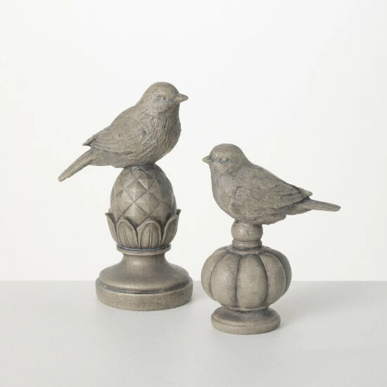 Resting atop a pair of regal finials are theese sophisticated birds. Finished in a warm gray hue with a beautiful antique wash, this set of two is the perfect accent for a coffee table or a buffet. Over the last 52 years, Sullivans has become an industry leader in home decorations. Our brand is rooted in tradition while incorporating modernized trends to keep your home looking up to date with timeless style. Here at Sullivans, we pride ourselves on creating product designs focused on quality and value, ensuring that our customers have access to beautiful products at reasonable price points.
