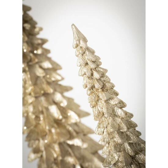 Glitz and glamour abound with this shimmering pair of decorative tabletop trees. Standing at 14.25″ and 18.5″ high respectively, these golden metallic figures are cleverly shaped from lightweight, crack-resistant polyresin.