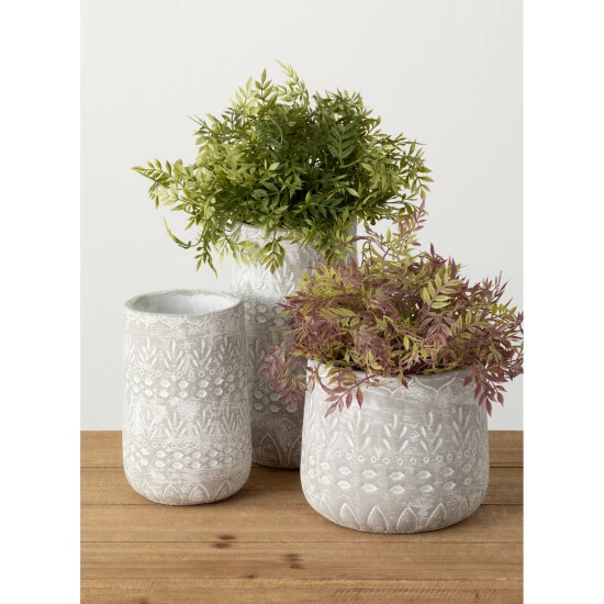 With its distinctive eye for design, of course, this botanical-patterned pottery offers more than just classic good looks. By introducing this sandblasted cement container into your design, you provide the perfect vessel for creating any masterpiece! Terracotta, clay, and even concrete have unique properties of being sustainable, safe, durable and versatile enough for every style!