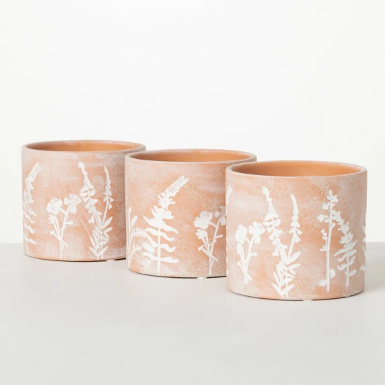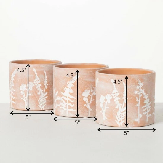 This trio of roomy ceramic planters are ideal for filling with seedlings or any other flowering plant. Featuring an artistic herb-patterned design on the exterior, these pots look just as great clustered together as they do individually Over the last 52 years, Sullivans has become an industry leader in home decorations. Our brand is rooted in tradition while incorporating modernized trends to keep your home looking up to date with timeless style. Here at Sullivans, we pride ourselves on creating product designs focused on quality and value, ensuring that our customers have access to beautiful products at reasonable price points.