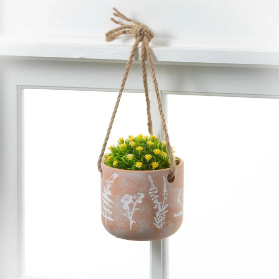 Suspended in mid-air with a durable jute rope, this trio of hanging ceramic planters are ideal for filling with seedlings or any other flowering plant. Featuring an artistic herb-patterned design on the exterior, these pots look just as great clustered together as they do individually. Over the last 52 years, Sullivans has become an industry leader in home decorations. Our brand is rooted in tradition while incorporating modernized trends to keep your home looking up to date with timeless style. Here at Sullivans, we pride ourselves on creating product designs focused on quality and value, ensuring that our customers have access to beautiful products at reasonable price points.
