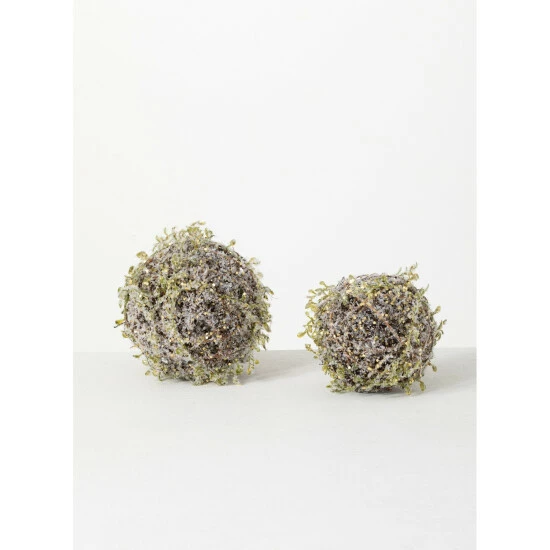 Dusted with a touch of golden glitter sparkles, and blanketed in a light white finish to resemble freshly fallen snow, these plastic twig orbs are your go-to accessory. The pair includes one sphere measuring 5″ around and a second one that is 6.5″ around.