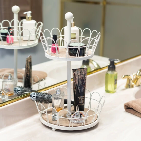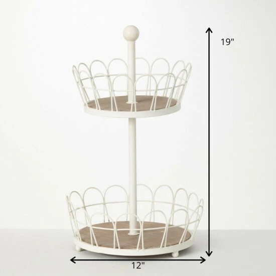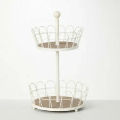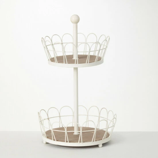 This two-tiered display with serving baskets is rubbed in a creamy white finish and grounded with natural stained wood bases. The foundation of this 19″ tall configuration is the ability to stash and stow in style. Over the last 52 years, Sullivans has become an industry leader in home decorations. Our brand is rooted in tradition while incorporating modernized trends to keep your home looking up to date with timeless style. Here at Sullivans, we pride ourselves on creating product designs focused on quality and value, ensuring that our customers have access to beautiful products at reasonable price points.