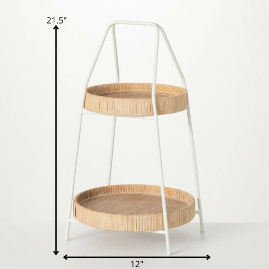 Perfect for festive feasts, private parties or decorating the countertop, this two-tiered bamboo serving tray/display is styled to look great all year long. Supported by a simple cream wire frame, this round piece stands tall at 21.5″ high. Over the last 52 years, Sullivans has become an industry leader in home decorations. Our brand is rooted in tradition while incorporating modernized trends to keep your home looking up to date with timeless style. Here at Sullivans, we pride ourselves on creating product designs focused on quality and value, ensuring that our customers have access to beautiful products at reasonable price points.