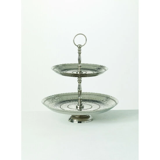 Put those delicious, decadent desserts on display with this sophisticated double tiered serving tray. Featuring graduated sized surfaces, this piece is perfect for the countertop during your holiday hosting.