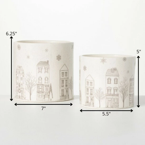 This set of 2 cream ceramic planters feature a neutral winter scene. Neutral enough to stay on display all winter long, these Christmas pots measure 5″ and 6.25″ high. Over the last 52 years, Sullivans has become an industry leader in home decorations. Our brand is rooted in tradition while incorporating modernized trends to keep your home looking up to date with timeless style. Here at Sullivans, we pride ourselves on creating product designs focused on quality and value, ensuring that our customers have access to beautiful products at reasonable price points.