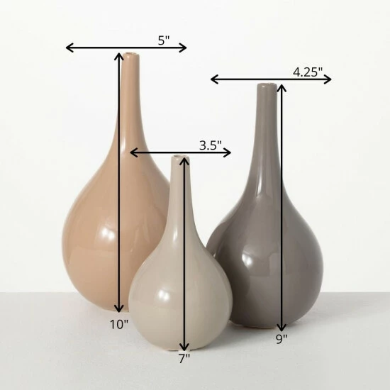 Sleek and svelte, each piece in this trio is pleasing to the eye. Colored with warm neutral hues, this glossy ceramic set is perfect for decorative use or as containers for faux branches and botanicals. Over the last 52 years, Sullivans has become an industry leader in home decorations. Our brand is rooted in tradition while incorporating modernized trends to keep your home looking up to date with timeless style. Here at Sullivans, we pride ourselves on creating product designs focused on quality and value, ensuring that our customers have access to beautiful products at reasonable price points.