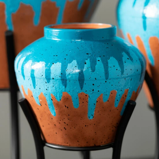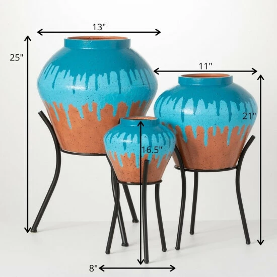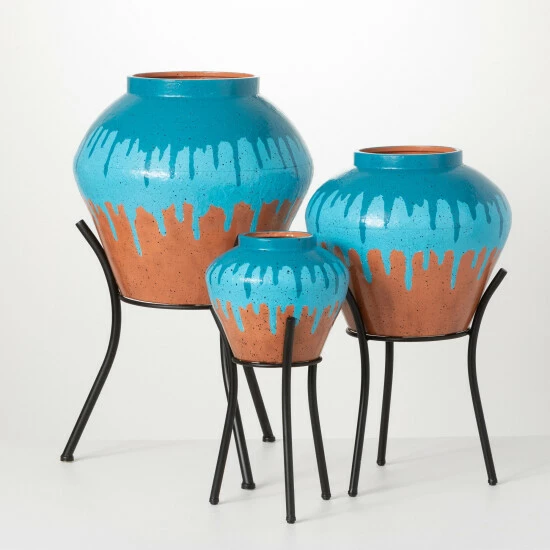 Arranged in a trio of varying heights, this set of round-bottomed containers supported by plant stands, are a great way to feature your favorite houseplants. Each are finished with a unique waterfall graphic effect that is worth calling attention to. Over the last 52 years, Sullivans has become an industry leader in home decorations. Our brand is rooted in tradition while incorporating modernized trends to keep your home looking up to date with timeless style. Here at Sullivans, we pride ourselves on creating product designs focused on quality and value, ensuring that our customers have access to beautiful products at reasonable price points.