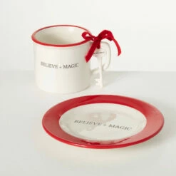 Have some cookies and hot cocoa waiting for Santa Clause this Christmas with this “Welcome Santa” dish set. With fun holiday text and classic seasonal colors, this set will be the perfect way to greet Santa and present some tasty treats for delivering gifts all night. Over the last 52 years, Sullivans has become an industry leader in home decorations. Our brand is rooted in tradition while incorporating modernized trends to keep your home looking up to date with timeless style. Here at Sullivans, we pride ourselves on creating product designs focused on quality and value, ensuring that our customers have access to beautiful products at reasonable price points.