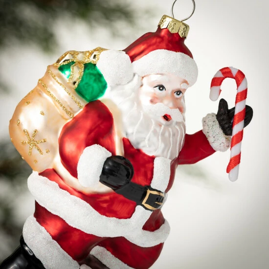 Accent your Christmas tree this season with this Santa ornament. Made from blown glass, Santa getting ready to deliver presents is a perfect way to add some fun to your holiday decor. Over the last 52 years, Sullivans has become an industry leader in home decorations. Our brand is rooted in tradition while incorporating modernized trends to keep your home looking up to date with timeless style. Here at Sullivans, we pride ourselves on creating product designs focused on quality and value, ensuring that our customers have access to beautiful products at reasonable price points.