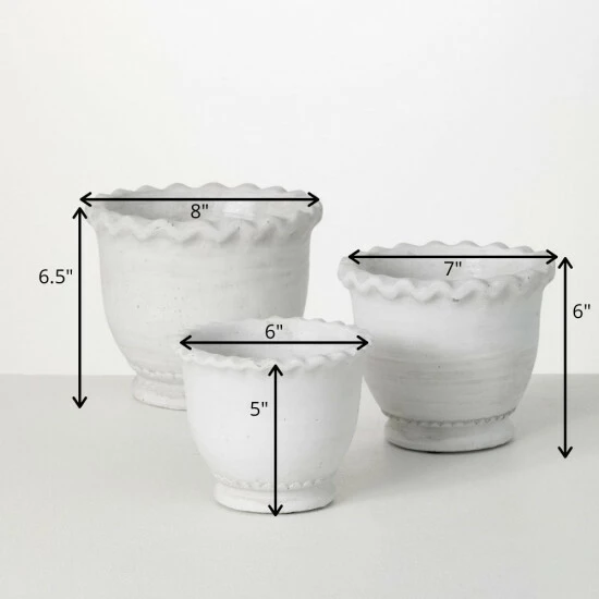 Add a regal sense of style to your space with this charming set of scalloped-edged pots. Over the last 52 years, Sullivans has become an industry leader in home decorations. Our brand is rooted in tradition while incorporating modernized trends to keep your home looking up to date with timeless style. Here at Sullivans, we pride ourselves on creating product designs focused on quality and value, ensuring that our customers have access to beautiful products at reasonable price points.