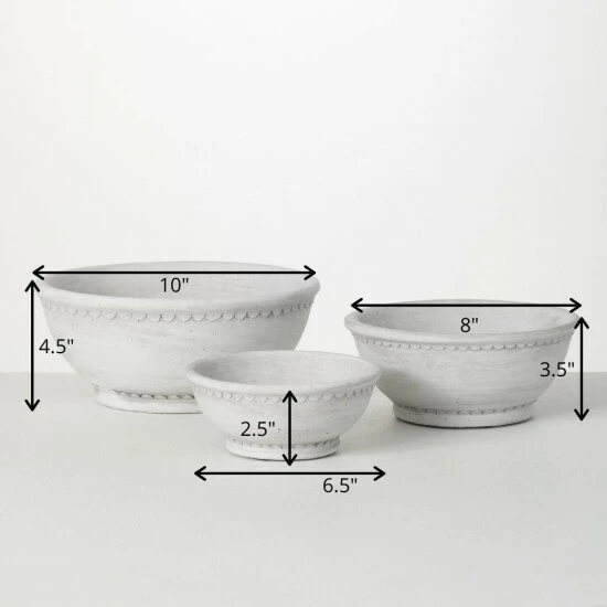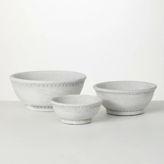 Add a regal sense of style to your space with this charming collection of dish-shaped cement garden planters. Over the last 52 years, Sullivans has become an industry leader in home decorations. Our brand is rooted in tradition while incorporating modernized trends to keep your home looking up to date with timeless style. Here at Sullivans, we pride ourselves on creating product designs focused on quality and value, ensuring that our customers have access to beautiful products at reasonable price points.
