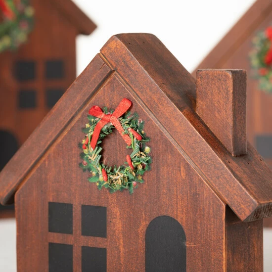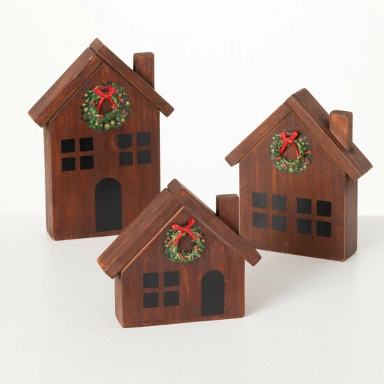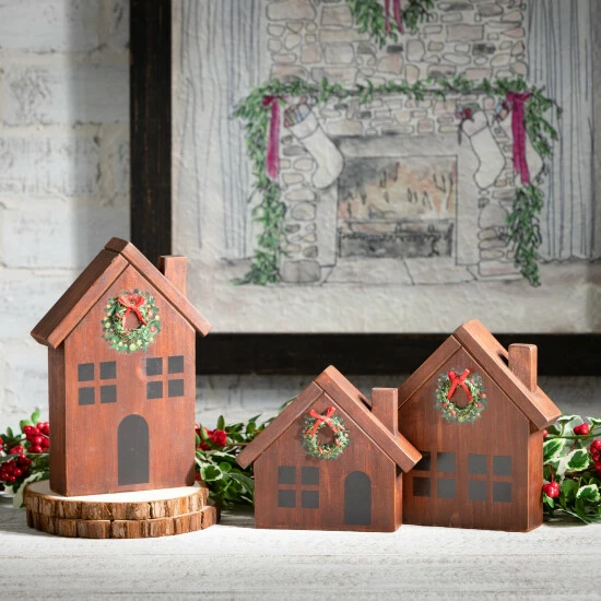 With a rich mahogany stain, this decorative set of wooden tabletop houses makes for a festive village-style display. Dress the mantle with these easygoing favorites that are big on style yet sized conservatively. Over the last 52 years, Sullivans has become an industry leader in home decorations. Our brand is rooted in tradition while incorporating modernized trends to keep your home looking up to date with timeless style. Here at Sullivans, we pride ourselves on creating product designs focused on quality and value, ensuring that our customers have access to beautiful products at reasonable price points.