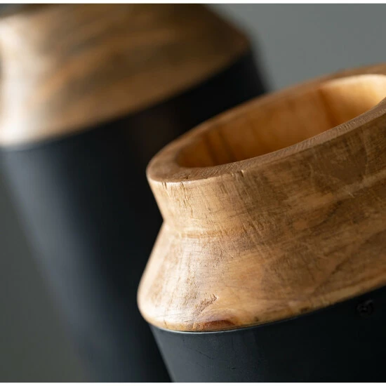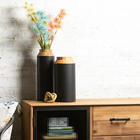 Lightweight, versatile and right on trend for today’s home, this pair of decorative wooden vases are ideal for that stylish collection of branches, twigs or faux botanicals. Paired with a sleek matte black, the 12″ and 14″ sizes are great for any space. Over the last 52 years, Sullivans has become an industry leader in home decorations. Our brand is rooted in tradition while incorporating modernized trends to keep your home looking up to date with timeless style. Here at Sullivans, we pride ourselves on creating product designs focused on quality and value, ensuring that our customers have access to beautiful products at reasonable price points.