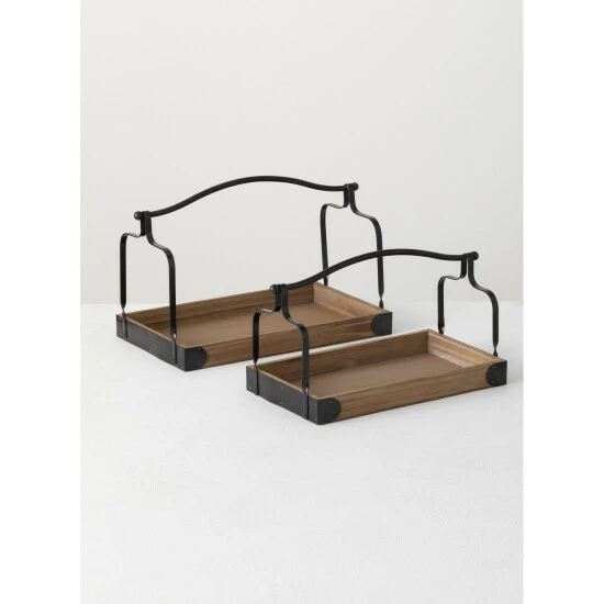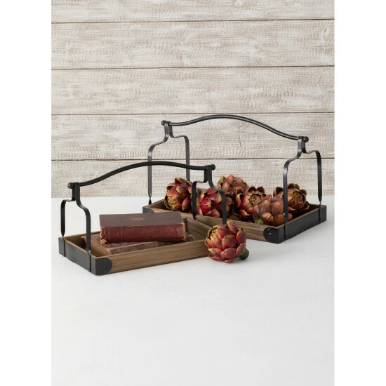 This delightful duo measures 14 and 16 inches long and are crafted of wood and metal. These are perfect for coralling mail and magazines. Perfect for hosting.