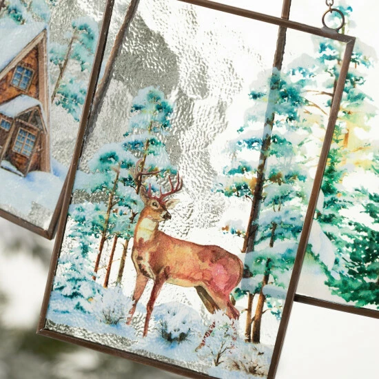 Capture the spirit of the outdoors this holiday season with the addition of these delightful ornaments. This triptych display features a winter woodland scene spanning across three glass panel ornaments. Over the last 52 years, Sullivans has become an industry leader in home decorations. Our brand is rooted in tradition while incorporating modernized trends to keep your home looking up to date with timeless style. Here at Sullivans, we pride ourselves on creating product designs focused on quality and value, ensuring that our customers have access to beautiful products at reasonable price points.